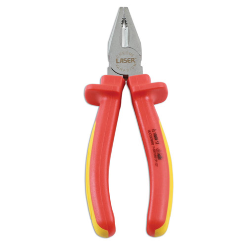 Insulated combination pliers, part of a wide range of insulated tools from Laser, manufactured from chrome vanadium with satin finish, with high voltage safety grip handles. VDE and IEC60900 certified