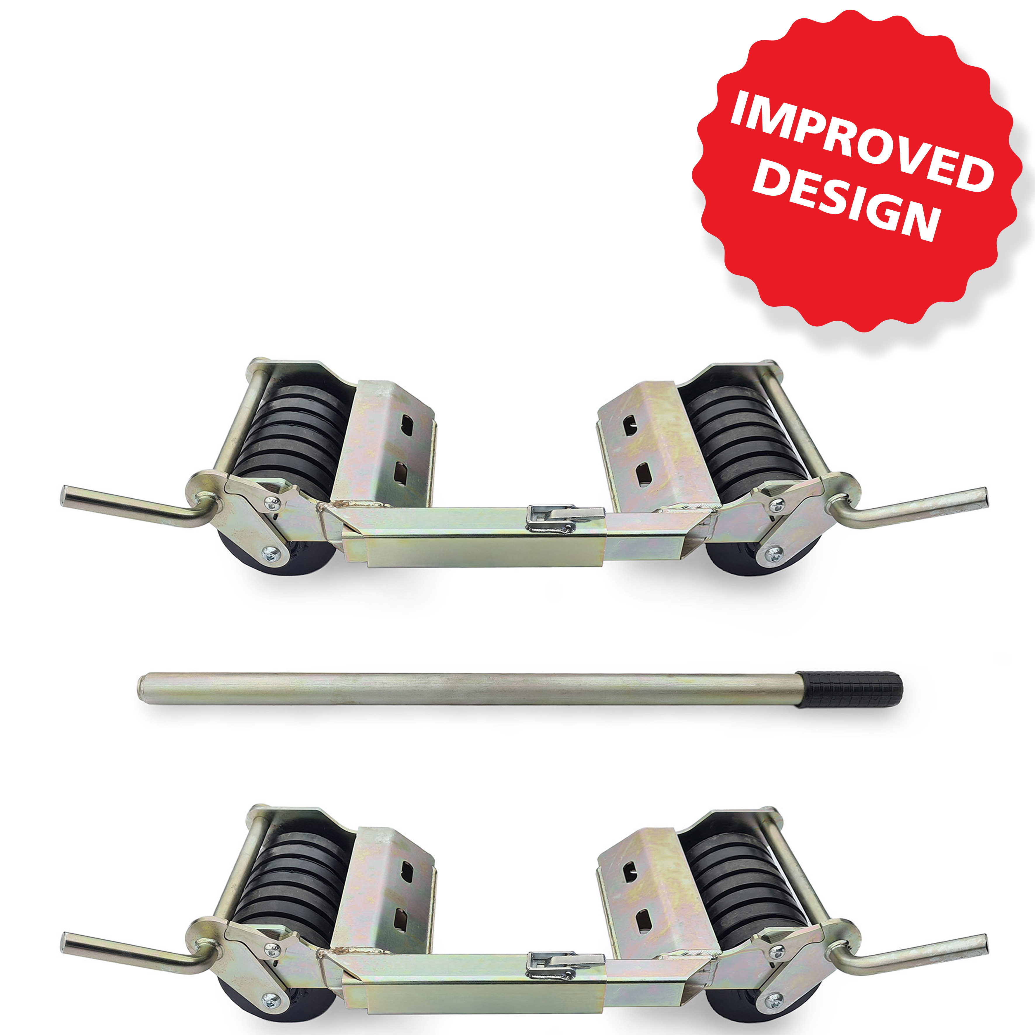 IMPROVED LOCKING DESIGN! Introducing the MK2 self-jacking loading skate, not with even easier to adjust auto locking ratchet lock. Designed to assist in loading and unloading vehicles that are unable to move independently due to power loss, breakdowns, or damage. Equipped with rubber rollers, these skates significantly improve mobility, safety, durability, and ease of use. The skate will fit any width of tyre, it also features adjustable self-locking spring mechanism, allowing users to adjust the size to eight different positions. Locking pawls (when engaged) automatically lock into position once raised, eliminating the need for any fiddly pins or clips. When raising & lowering the casualty vehicle in the skate, a carefully calculated lever angle with the bar ensures easy raising and lowering without the need for significant force. Additionally, the electro-galvanised dolly prevents corrosion, extending its lifespan. This loading skate provides the solution to the challenge of loading and unloading casualty vehicles especially like EV’s, SUV’s or anything with very wide tyres vehicles without the need for a car jack.